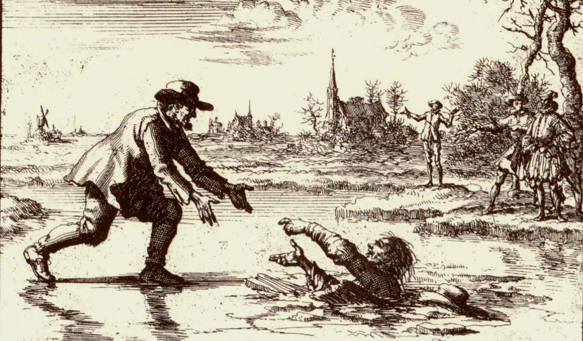 The burgomaster of Asperen hired a thief-catcher to capture Dirk. Dirk’s flight took him to a frozen stream, which he began to cross. The thief-catcher hesitated but followed after him. Being a heavily built man, however, he broke through the ice and was forced to cry for help from the only person available – the man he was pursuing. One can only imagine the thoughts that crossed Dirk’s mind, but ultimately the thought that prevailed was Jesus’ command: “But I say to you, love your enemies and pray for those who persecute you” (Matt. 5:44). Dirk turned back and rescued the thief-catcher.