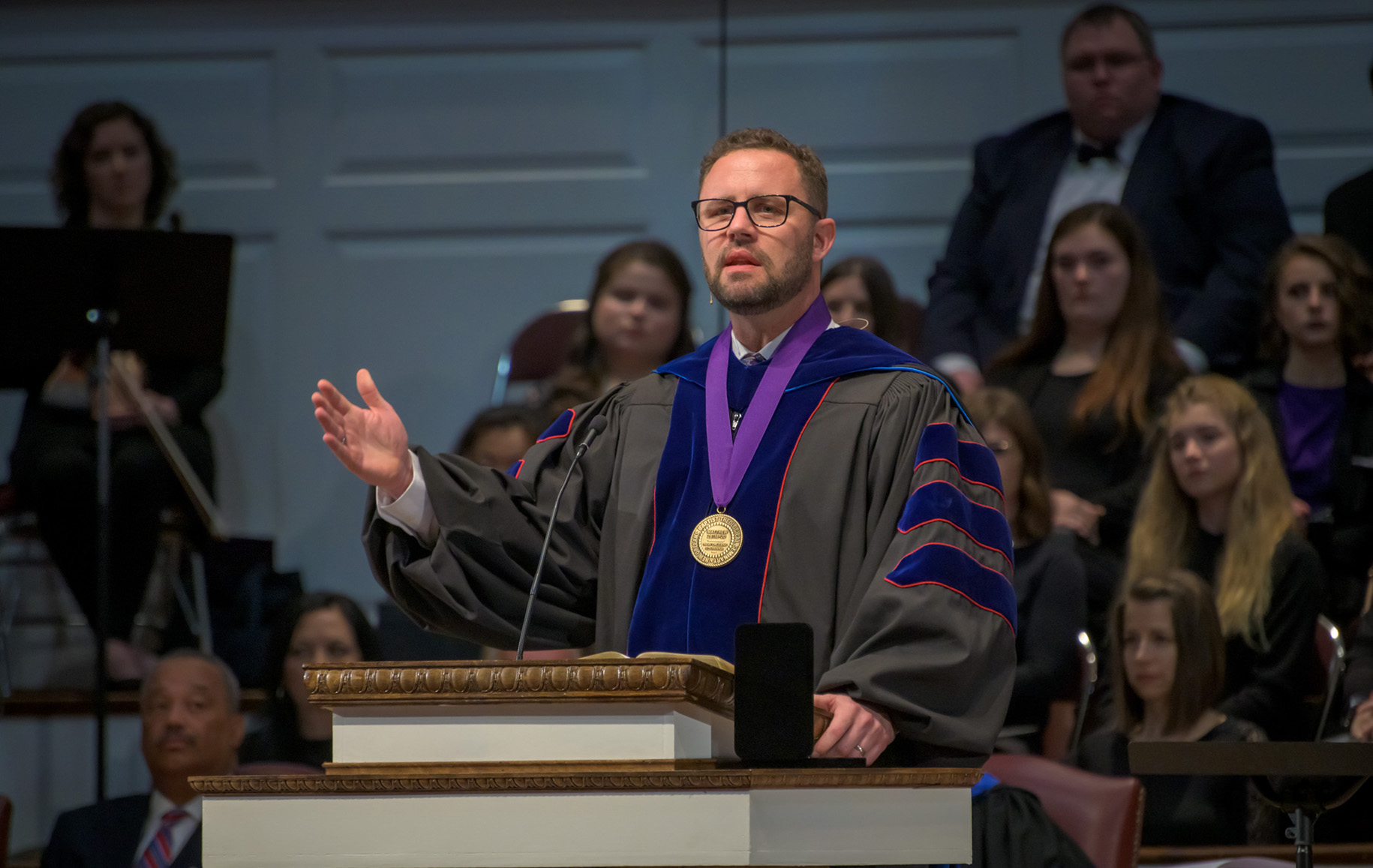 Despite the historic nature of the inauguration, Dew directed listeners’ focus to the mission rather than to himself. He called those gathered to ponder the brokenness of the world and their role in proclaiming the name of Jesus throughout the nations.