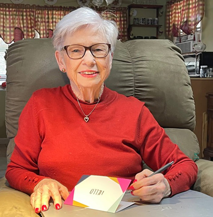 Linda Thompson, 80, keeps a list handy of International Mission Board missionaries that is about 330 names long. Daily, Thompson prepares handwritten cards to send to them – about ten per day – despite her advancing macular degeneration.